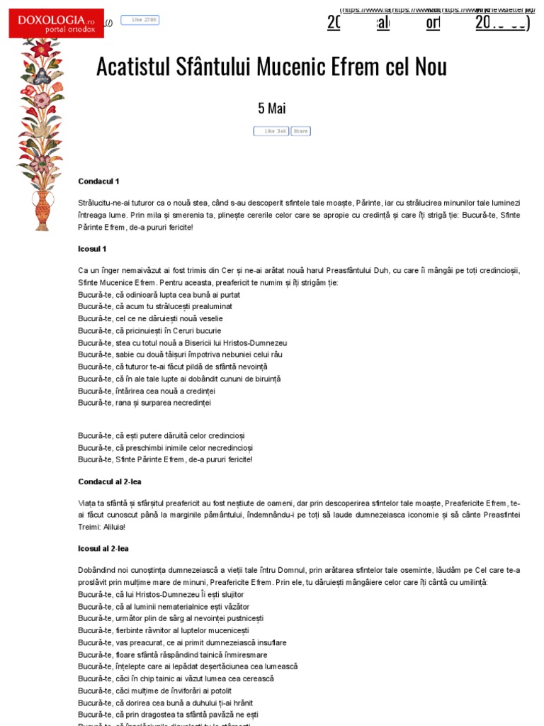Acatistul Sfantului Mucenic Efrem Cel Nou Doxologia