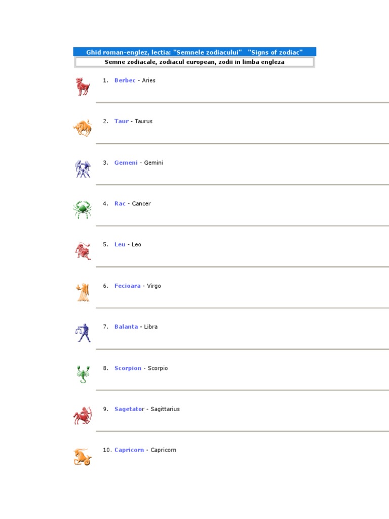 Zodiile In Diverse Limbi Birou Traduceri Constanta 0761 431 255