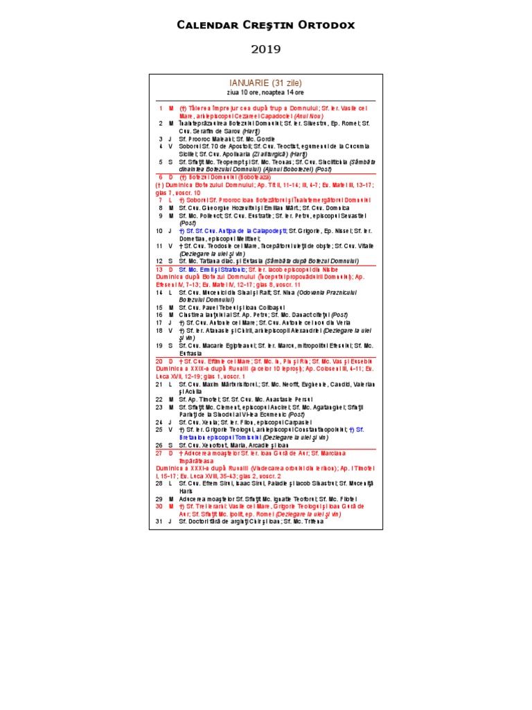 Calendar Ortodox 2020 Sărbători Religioase Din Fiecare Lună A
