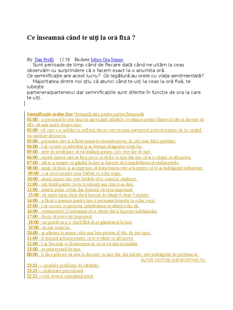 Ce Inseamnă Cand Te Uiți La Oră Fixă Docx