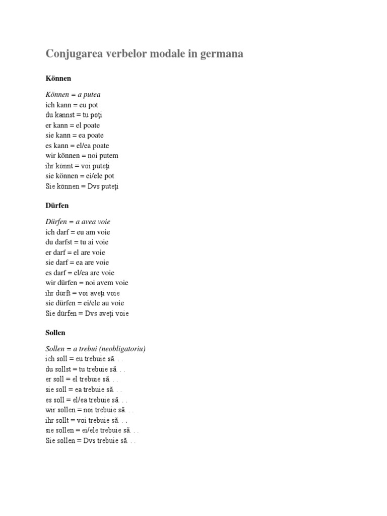 Conjugarea Verbelor Modale In Germana