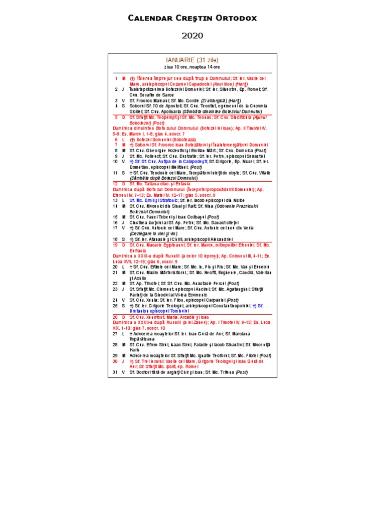 Calendar Ortodox 2020 Sărbători Religioase Din Fiecare Lună A
