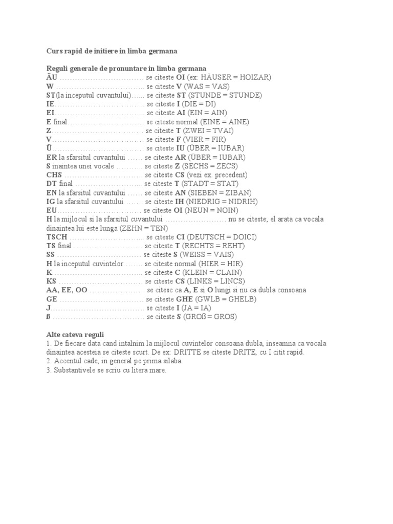 Curs Rapid De Initiere In Limba Germana