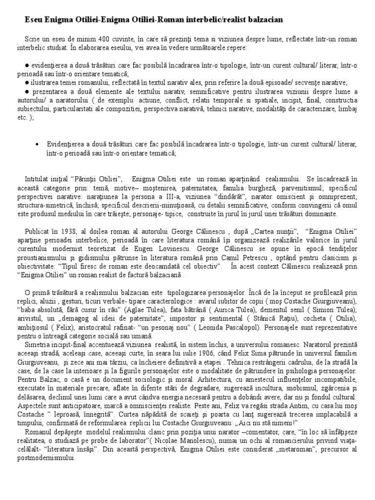 Enigma Otiliei Pentru Bac