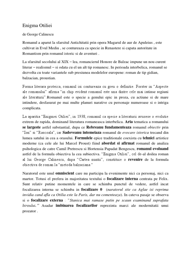 Enigma Otiliei George Calinescu Argumentare Pdf Document