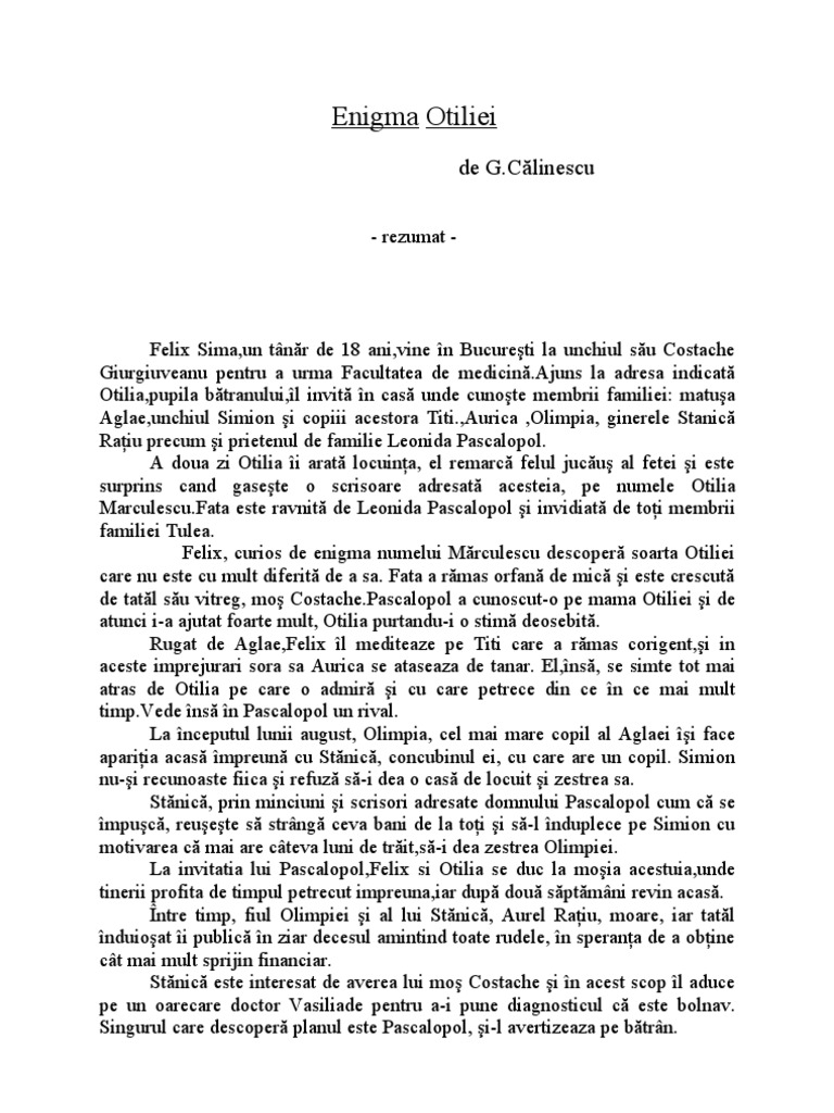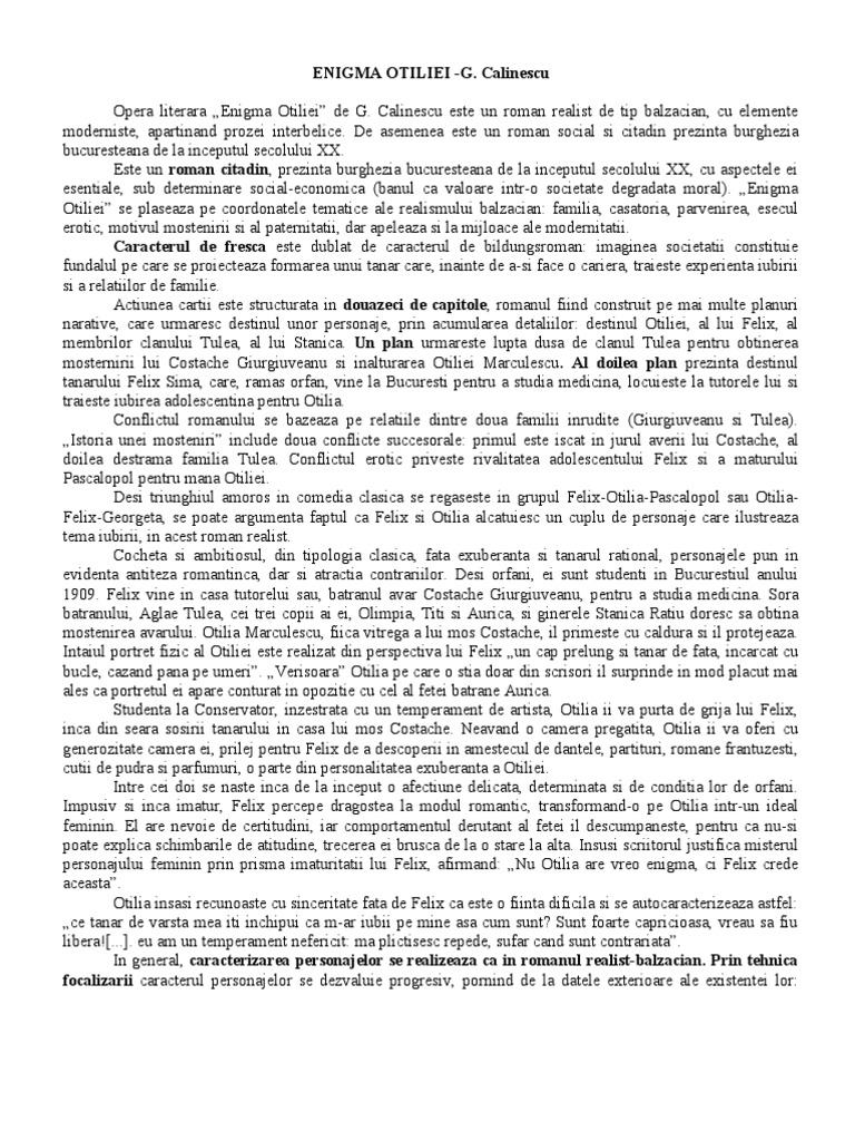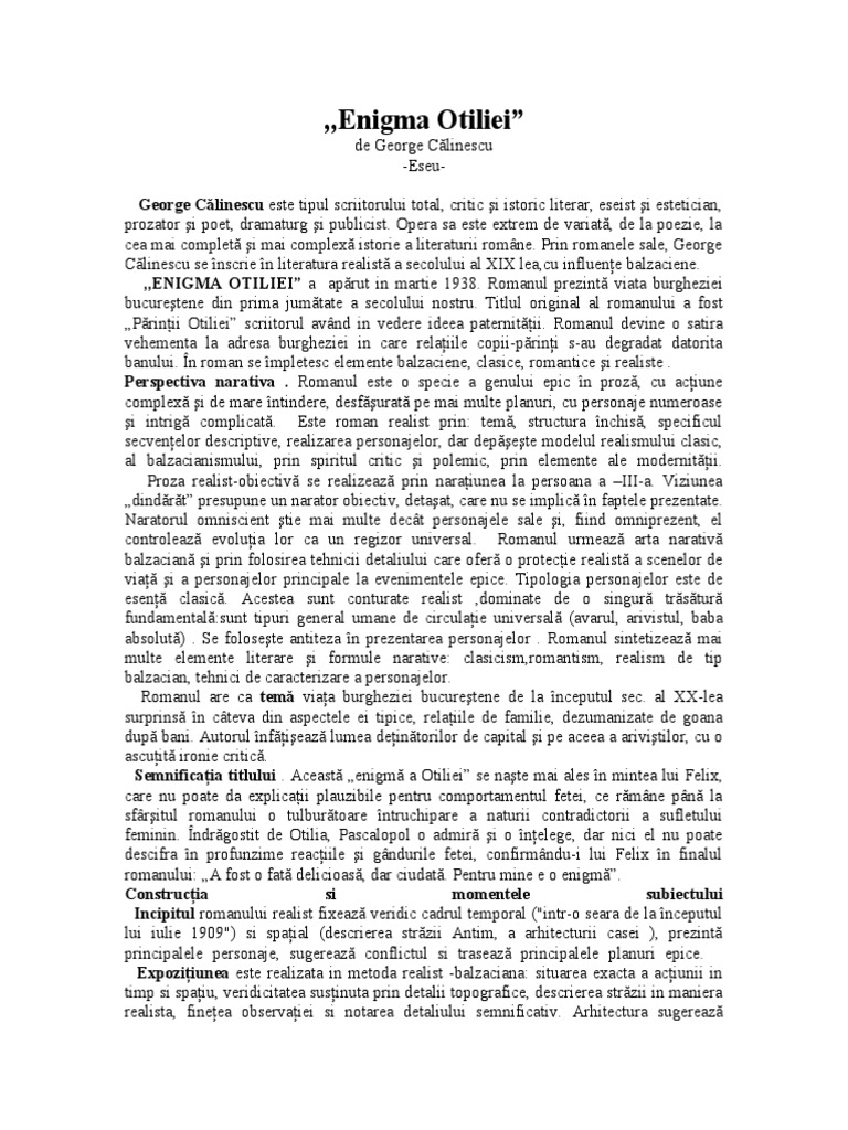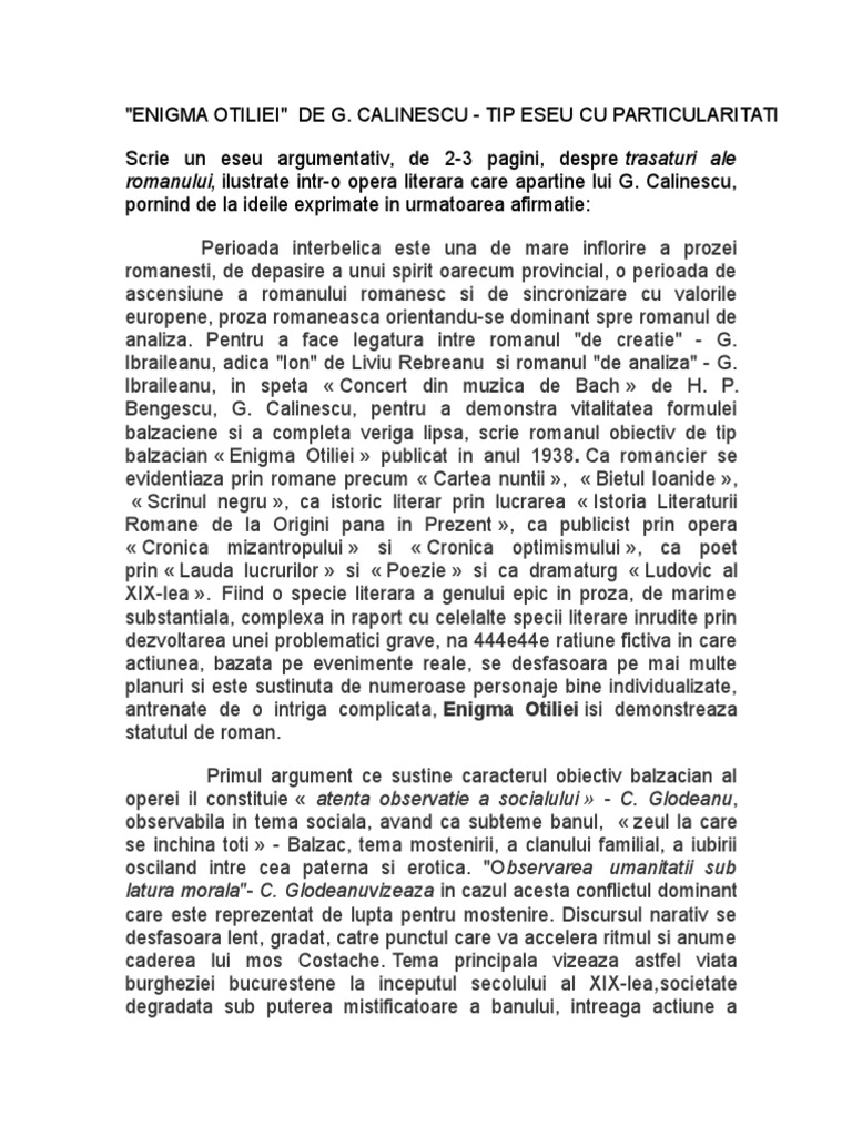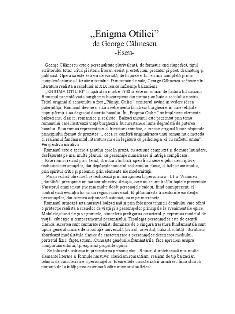 Referat Enigma Otiliei Romana 4091 Regielive