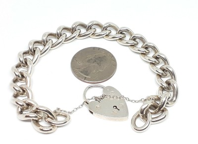 Vintage Sterling Silver Heart Padlock Curb Link Starter Charm