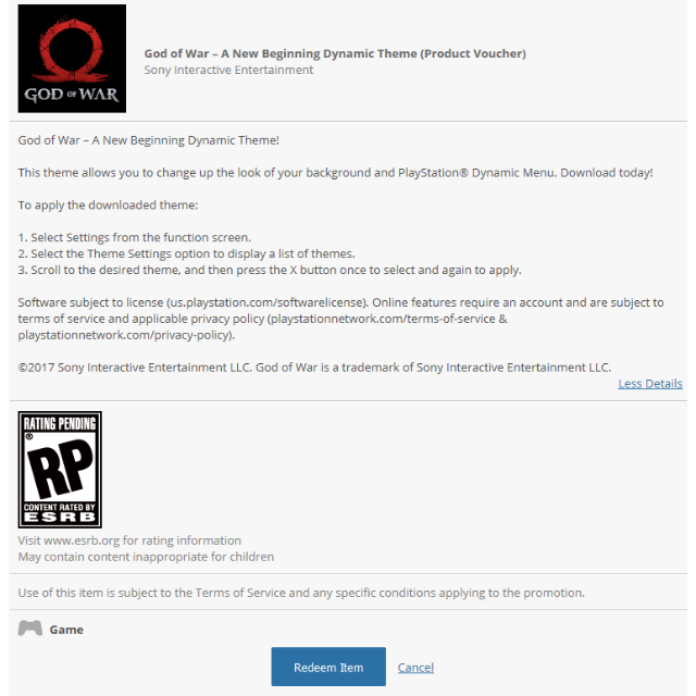 God Of War A New Beginning Dynamic Theme Digital Code Ps4