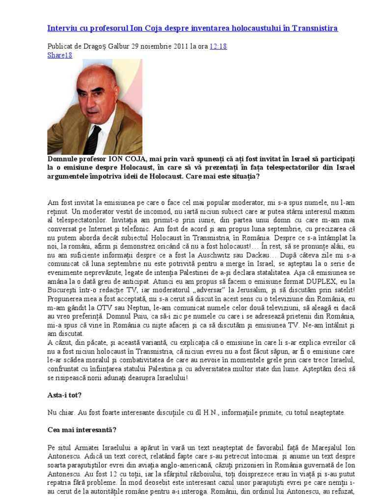 Interviu Cu Profesorul Ion Coja Despre Inventarea Holocaustului In