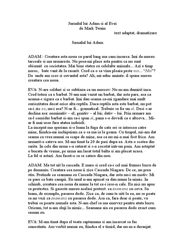 Jurnalul Lui Adam Si Al Evei M Twain Pdf Document