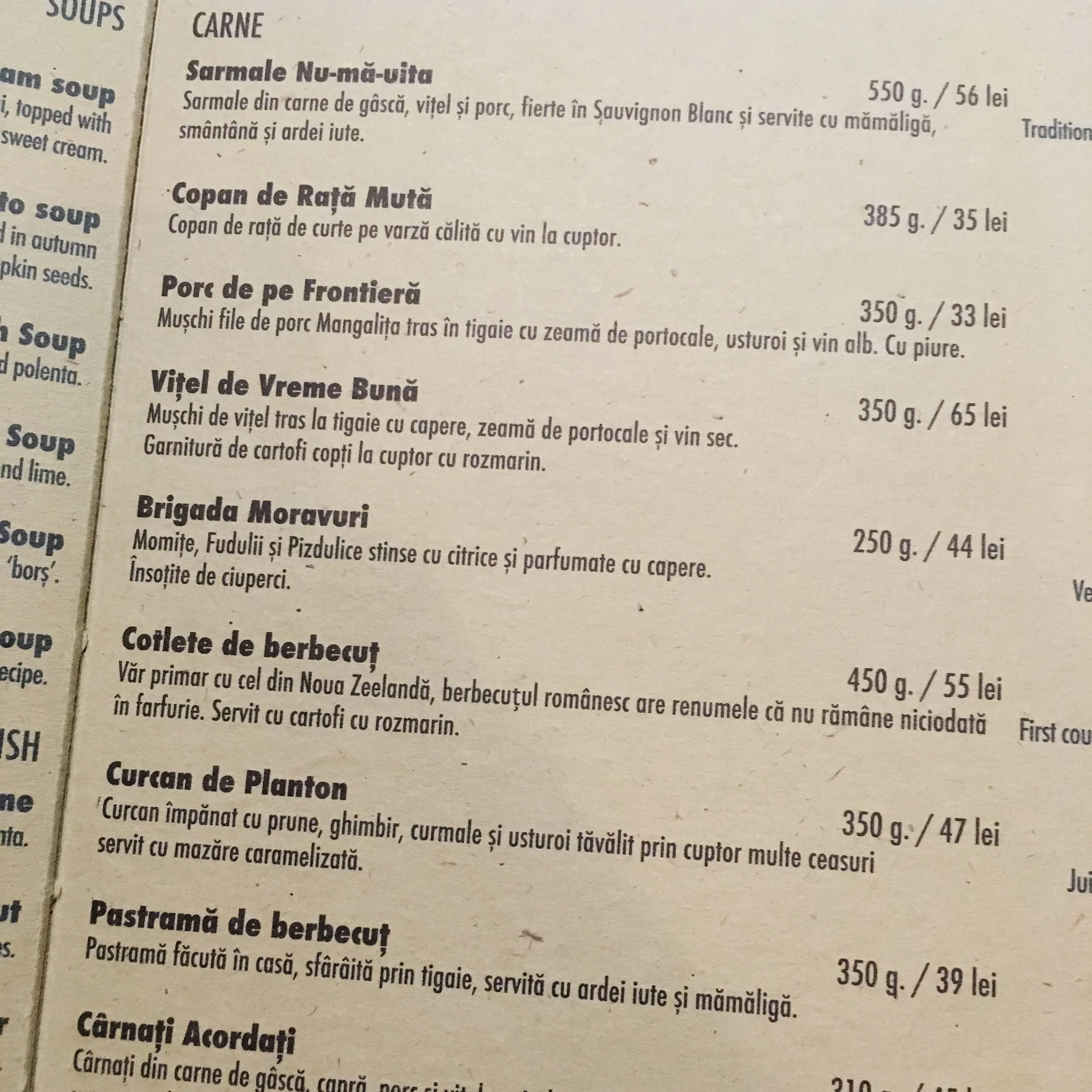 Menu Picture Of Lacrimi Si Sfinti Bucharest Tripadvisor
